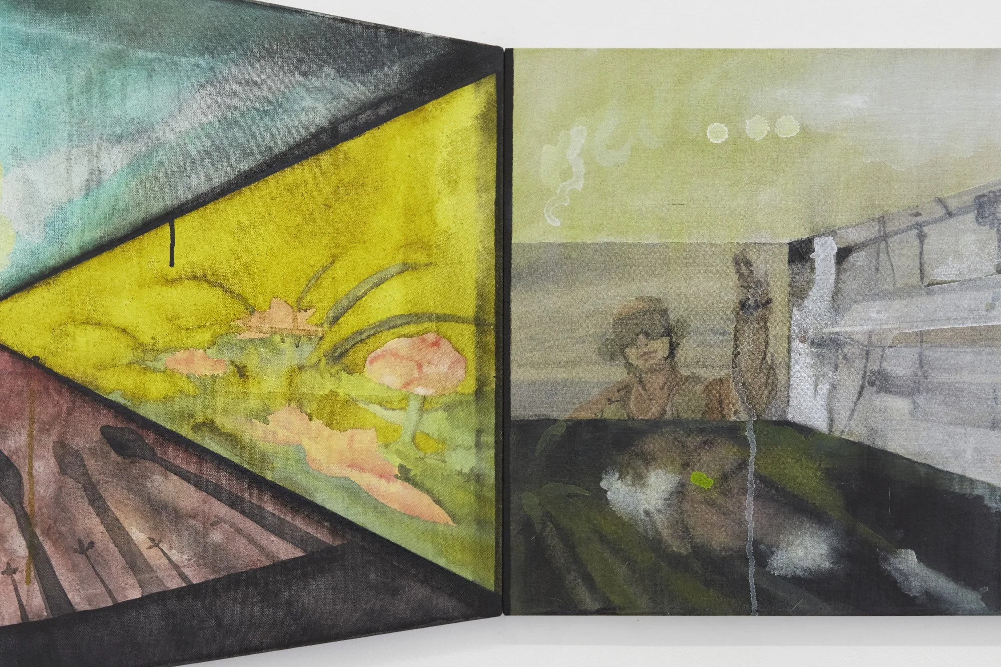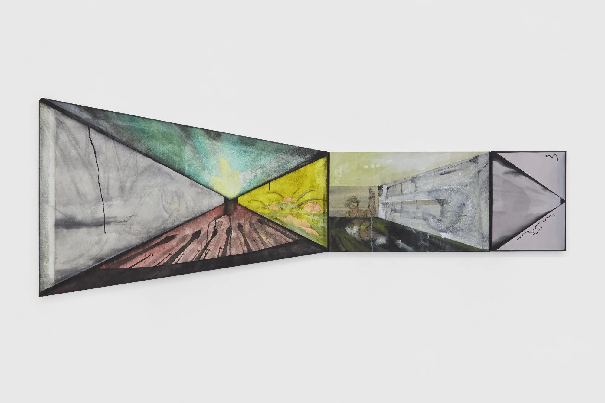 , 2024–2025. Watercolour on linen and paper, 83.5 x 218 cm