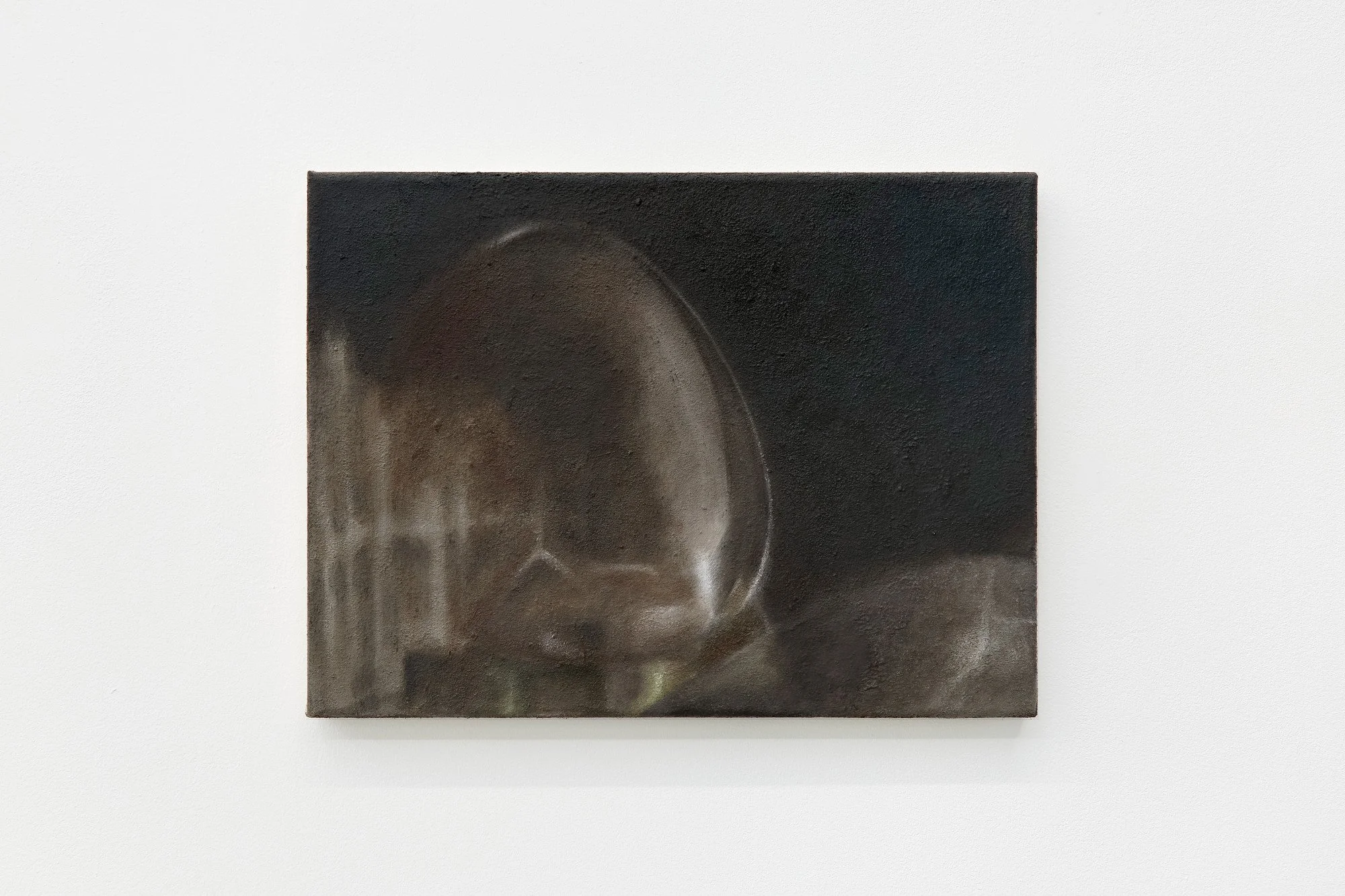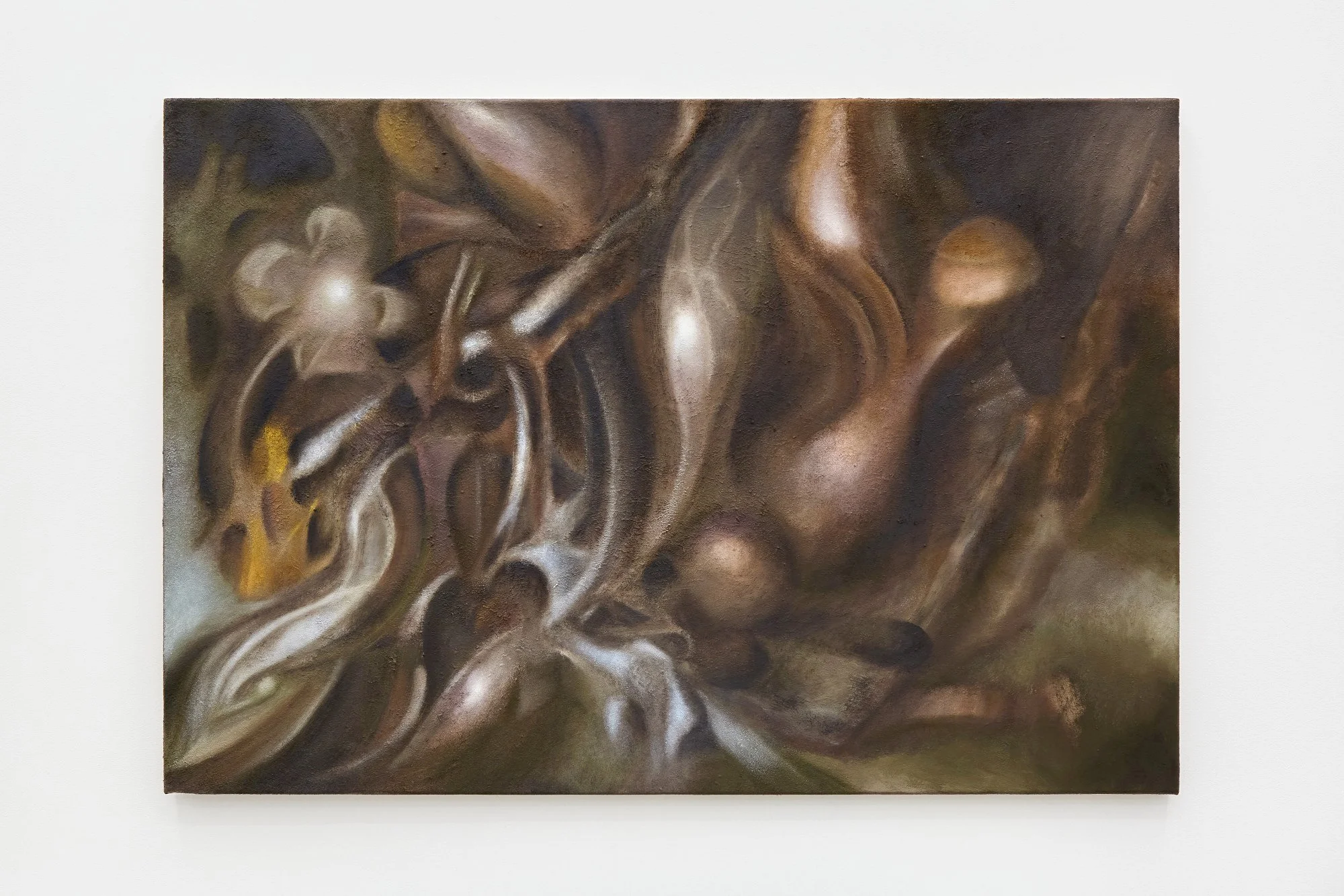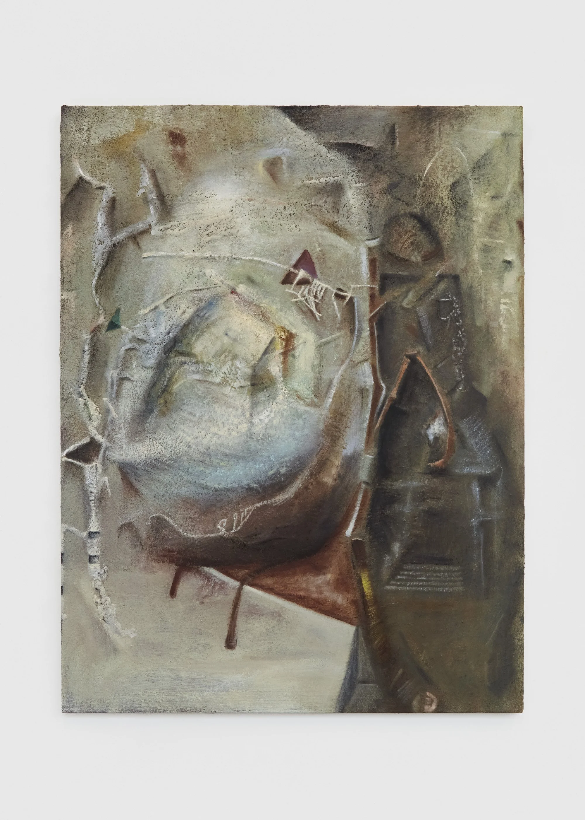 Kin Ting Li, Ode To A Ventriloquist, 2025. Oil and sand on canvas, 107 x 81 cm