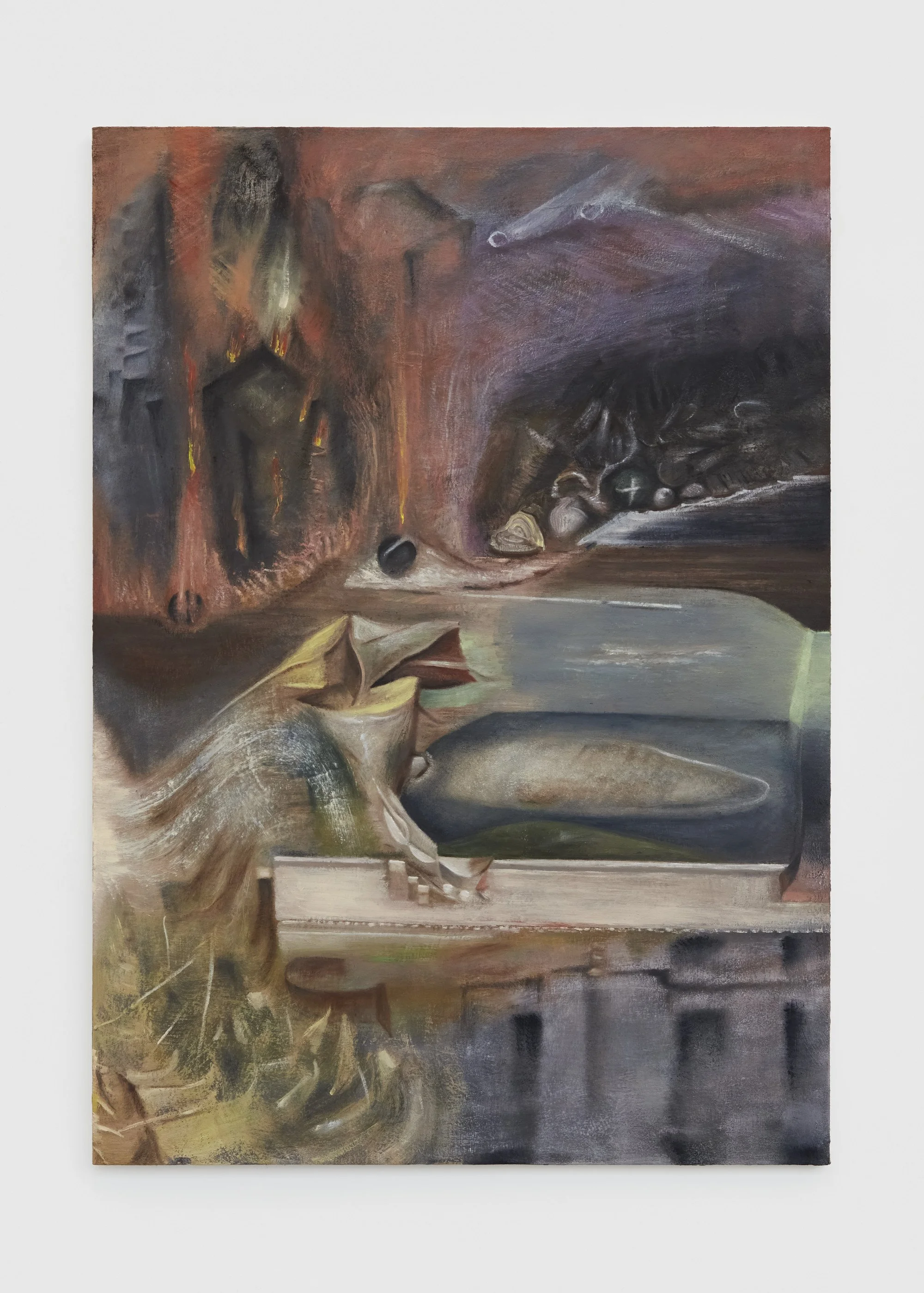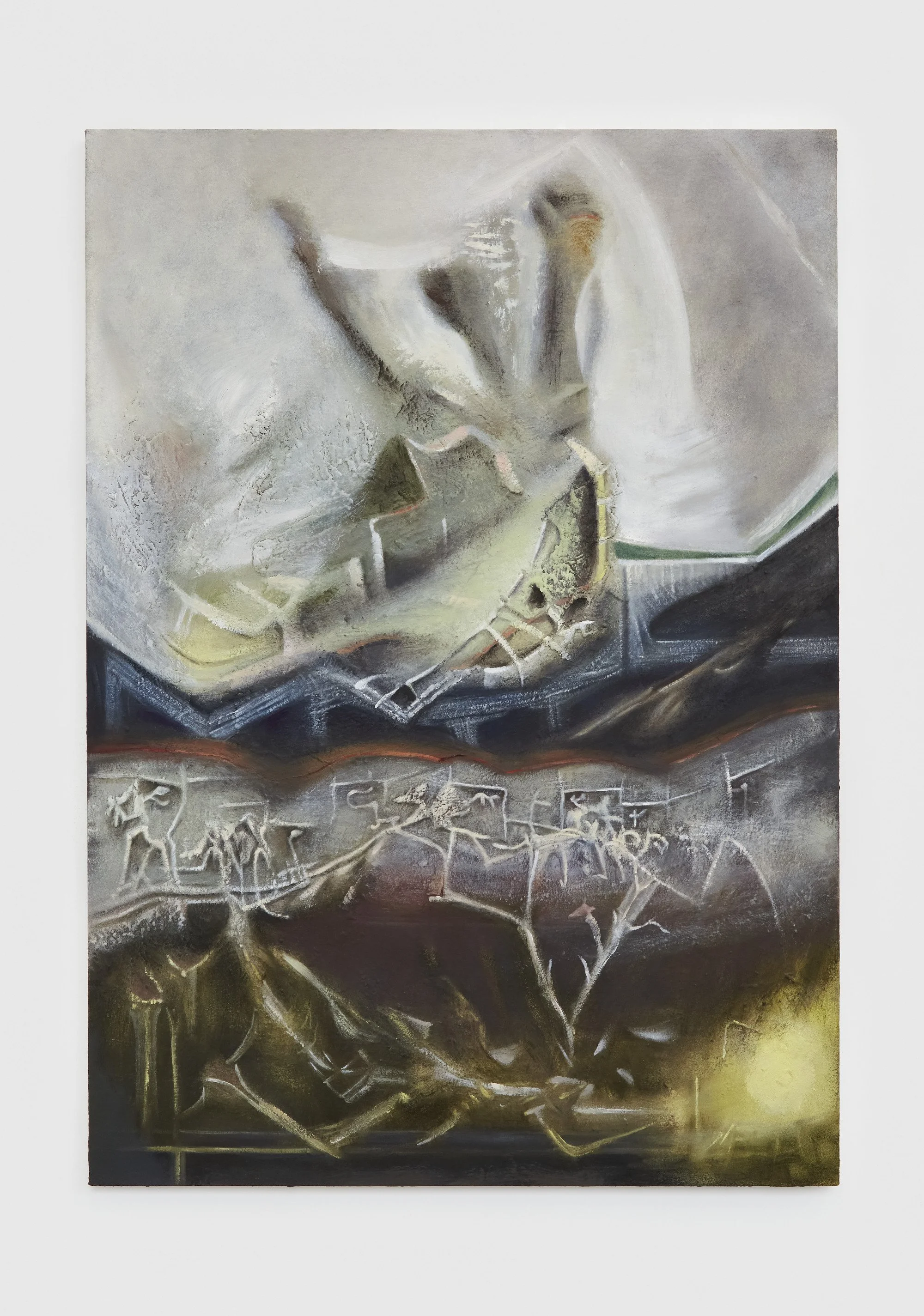 Kin Ting Li, Primordial Act, 2025. Oil and chalk on canvas, 122 x 87 cm